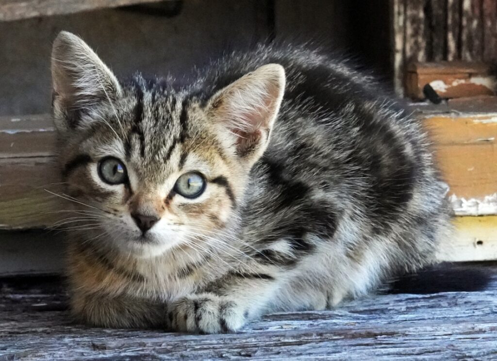 Wild kitten hanging around the sheds. Hisses and growls even when I leave some food out for it. Was half this size and starved.